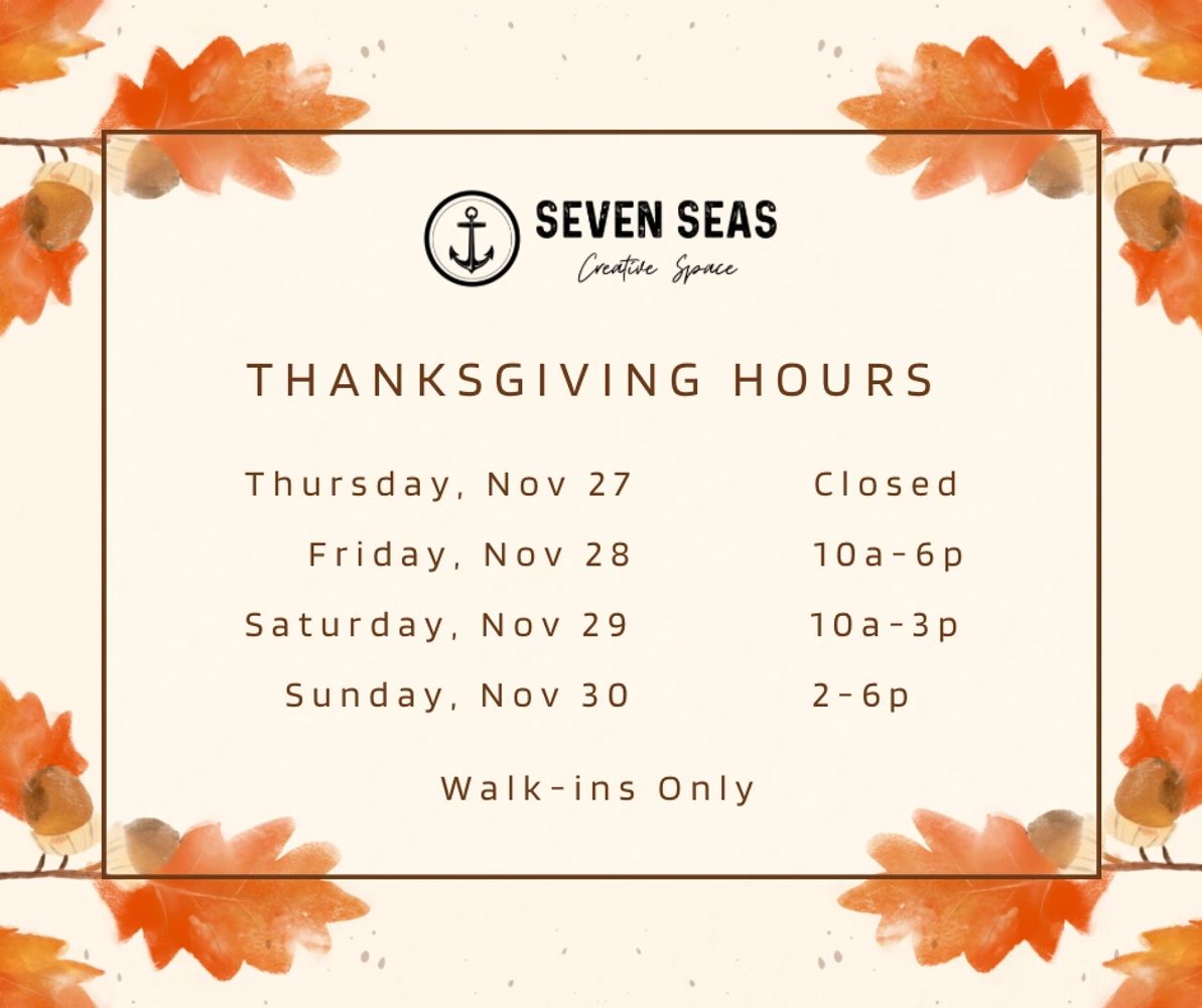 Seven Seas Creative Space is a cozy and unique space to host your next event or meeting. Send us a message about your plans and we will get back to you soon!